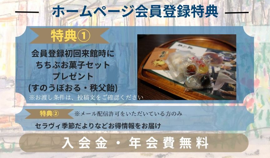 さらに、初回のご来館時には、秩父の名物「ちちぶお菓子ミニセット」をプレゼント!